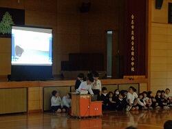 「総合的な学習の時間で学んだ神楽を発表するグループ」「3年生から学習し始めた『理科』と『社会』での学習内容をレゼンテーションソフトを使って発表をするグループ」「体育の授業で取り組んだ跳び箱の開脚跳びや台上前転を発表するグループ」「音楽で学習したボディパーカッションやリコーダー、鍵盤ハーモニカの合唱を発表するグループ」がありました。