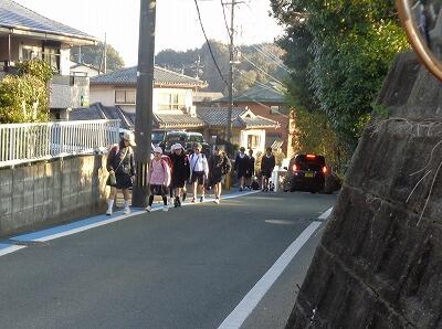時には、電柱を避けるためにはみ出すこともありますが、上級生が後ろを歩く下級生に気配りをしている場面を見ました。