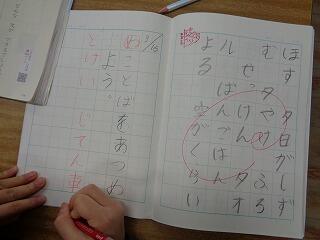国語の授業をしているクラスでは、「ことば」を集める学習をしていました。「ものの名前(名詞)」「様子を表す言葉(形容詞)」・・・・。授業をしている職員からの問いかけに熱心に意見を発言したり、友達と意見交流をしたりする姿がありました。ノートには、日付と授業のめあてがしっかりと書いてあり、学習の進め方も身についています。