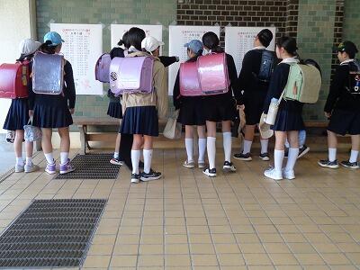 子供たちは、登校すると昇降口等に掲示してあるクラス発表で本年度の学級とクラスメイトの名前を確認しました。