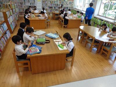 2年生以上の教室では、教科の授業を受けている子供たち、学級の目標を話し合っている子供たちの姿を見ることができました。6年生になると、ノートに黒板に書かれたことを素早く書き写しながら自分の考えを深めたら、話し合ったりしていました。図書室では、図書室の利用の仕方を確認した後、静かに読書する姿を見ました。マナーがしっかりと身についています。
