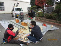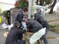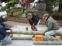 12月23日(土)に、PTA応援委員さんを中心に、PTA有志の皆さまに集まって頂き、門松づくりが行われました。学校からも校長、教頭、PTA事務が参加しました。須屋神社の門松づくりに携わっておられる方を講師にご指導をお願いしていましたが、ご指導はもちろん、材料も粗方揃えて頂いていました。大変感謝申し上げます。