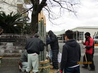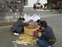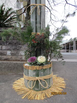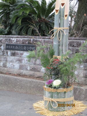 12月24日(土)合志市の野田様、榊様、有志の方々の皆様、PTA役員、保護者等で立派な門松を制作していただき、校門前に設置していただきました。