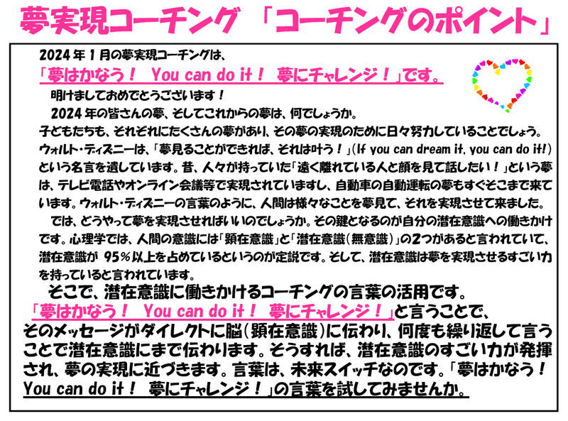 1月のポジティヴワード・コーチングのポイント