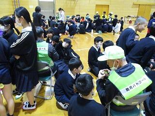 全校児童が久しぶりに体育館に集まりました。最初に入場した学級が、無言で静かに入場してきました。そして、静かに整列し、座って待っていました。その後、続々入場して来るどの学級も無言でした。