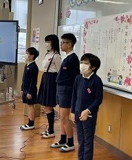 開式後は、2年生、4年生、6年生の各学級代表が、「前期の振り返り」を述べていきました。自分の成長と今後取り組みたいことをそれぞれに発表していきました。きっと緊張したことでしょう。でも、どの発表も聞き取りやすく、内容も心に残るものでした。