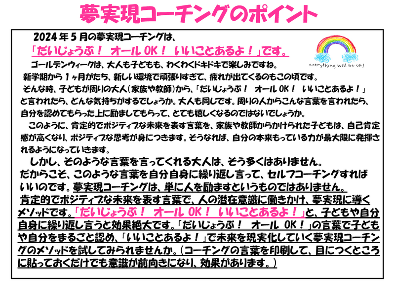 今年度も「夢実現コーチング」やっていきます!