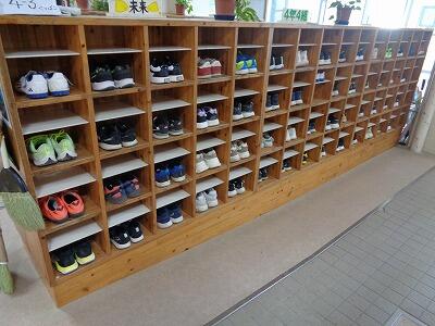 9月30日にクラブ活動の様子を見て回っていると、下駄箱のクツに目がとまりました。どのクツのかかともきれいにそろえてありました。