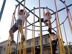 登り棒、うんてい、ブランコ、鉄棒、ジャングルジムも同様です。「見てくださ~い!」という声に振り向くと登り棒のてっぺんでこちらに手を振る子がいました。
