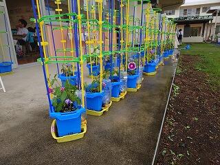 4月23日にアサガオの芽が出たことをHPで紹介していました。それから1月半で花が咲きました。本当に早いです。