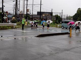 このところ毎朝子供たちが雨の中を登校して来ています。