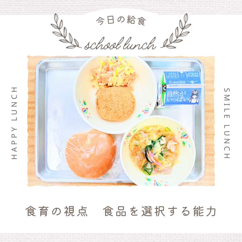 「くまもとの赤」ブランドの食材を給食に取り入れます。今日は、馬肉を使ったコロッケを給食に取り入れました。馬肉は、ヘルシーなお肉です。コロッケバーガーにして食べても美味しいように、献立を考えています。
