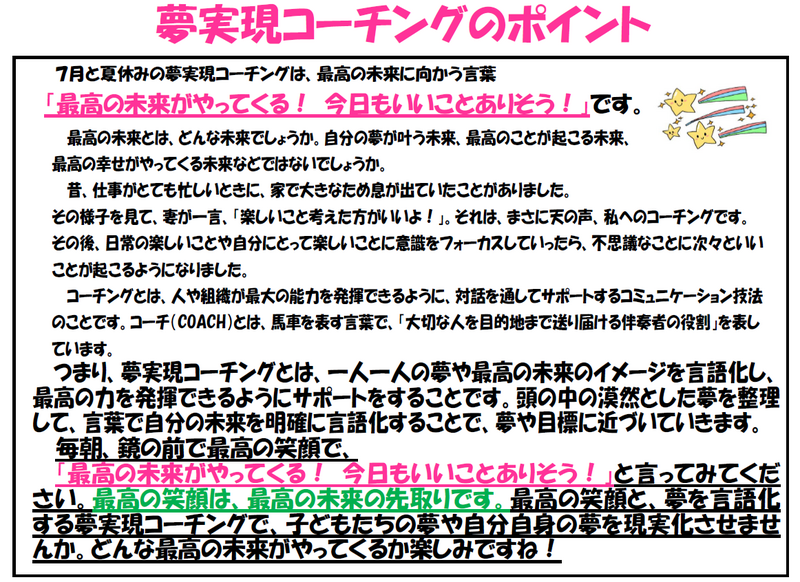 7月と夏休みのポジティヴワード・コーチングのポイント