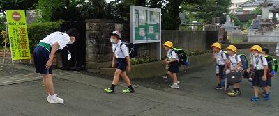 自分で早起きして、家の人や地域の方にあいさつをして、友達にあいさつして、みんなで身体を動かして…と、夏休みの1日目として理想的な出だしです。子どもたちは、皆いい笑顔で過ごしていました。この後も、ぜひ続けて欲しいです。