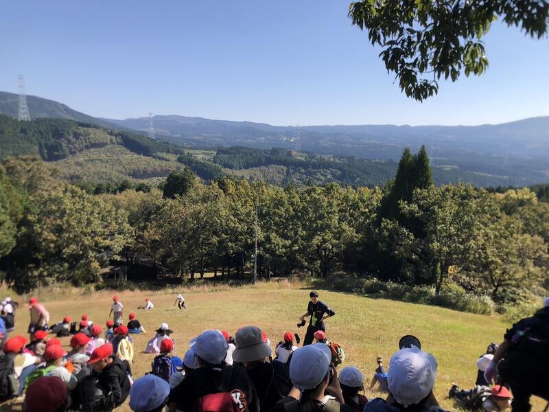 ただ今、素晴らしい天気と絶景に囲まれて、5年生は弁当を食べています。