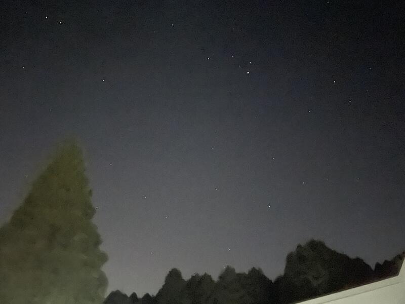 昨夜のナイトゲームには西南小のたくさんの西南小職員(約10人)が来て、安全確保8割、脅かし2割で手伝ってくれました。真っ暗な山中で約2時間以上子どもたちが通過するのを待っていました。今朝は全員出勤していますので、職員の遭難はなかったようです。さて、子どもたちは山の夜を女子だけでなく男子までもキャーキャー言いながらじっくり味わいました。強がりの言葉と、怖さを紛らす大声が山中に響いていました。頭上は満天の星空でした。(あまりよく写っていませんが)