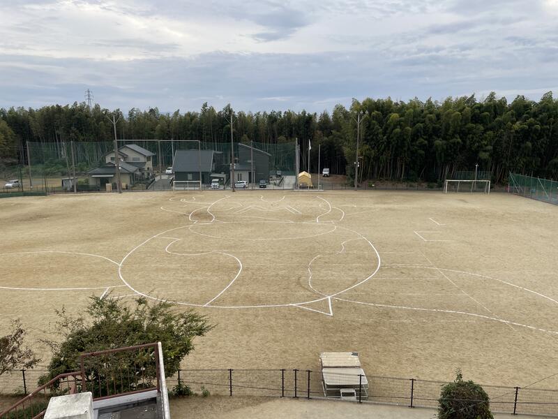 この後、全校児童でこの白線に沿って並び、写真を撮る瞬間、運動場が静まり、みんなの気持ちがひとつになりました。