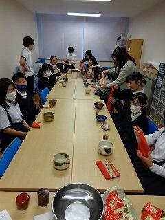 まずは、茶道クラブです。今日は袱紗(ふくさ)のたたみ方、使い方を学んでいました。子どもたちに教えてもらいながらやってみますが、作法を含むたたみ方なので単に畳むのとは違うことを知りました。「これ、最初に4つ折りにする意味ないよね?」などと話していたら、子どもたちに「作法ですから」と叱られました。それを外部講師の先生が微笑んで見ておられました。たいへん失礼しました。