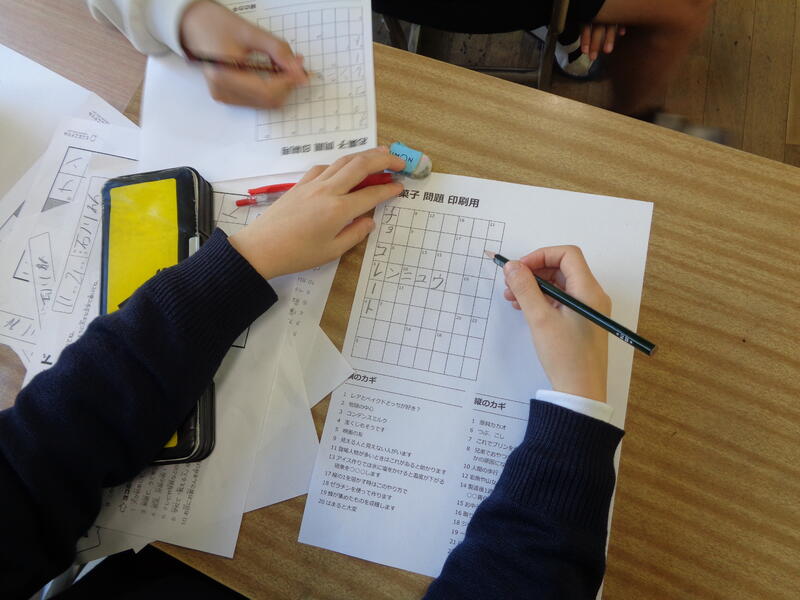 最後は、謎解きクラブです。クロスワードパズルをしていました。やりだすと止まらないものです。「これ何ですか?」と子どもに聞かれたクロスワードは大人でもなかなか難しい問題で、いっしょにやっているうちに私が一番のめり込んでしまい、気づいたらクラブ活動の時間が終わってしまいました。これが楽しさですよね。