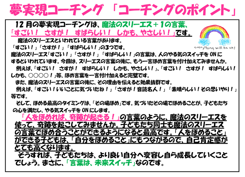 12月のポジティヴワード・コーチングのポイント