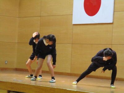 昼休みにダンスクラブによる発表会がありました。クラブ活動の時間を中心に練習してきたそうです。その成果が十分に伝わる発表内容でした。