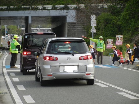 そうした中、毎朝、地域の防犯パトロールの方々が横断歩道や交差点で交通指導をしていただいています。長年続く、地域の方のボランティアのおかげで、大きな交通事故もなく安全に登下校することができています。