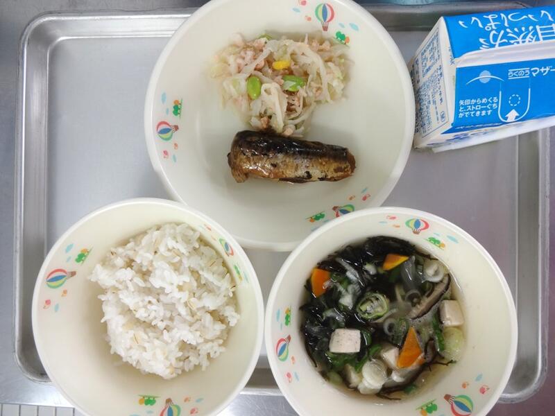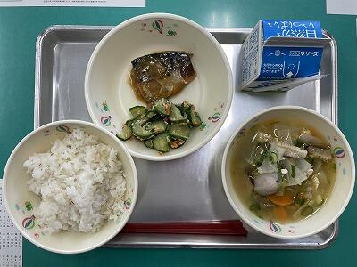 さばのみそ煮はご飯が進みます。さばみそを食べて麦ご飯をほおばり、大葉の香り高い和え物を口に放り込み、ネギとショウガの香り豊かなけんちん汁をすするのです。単なるおじさんの食レポになってきました。子どもたちはこの感覚をわかってくれるでしょうか。(校長)