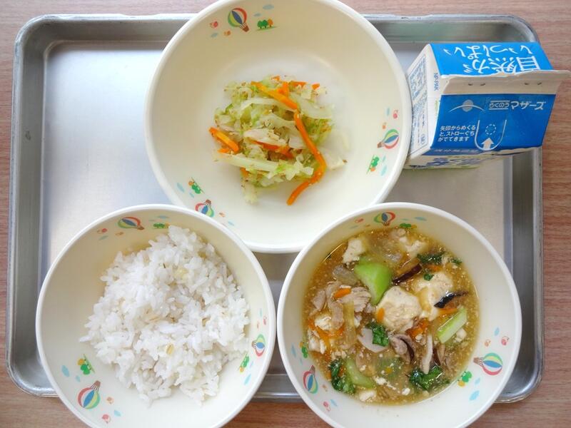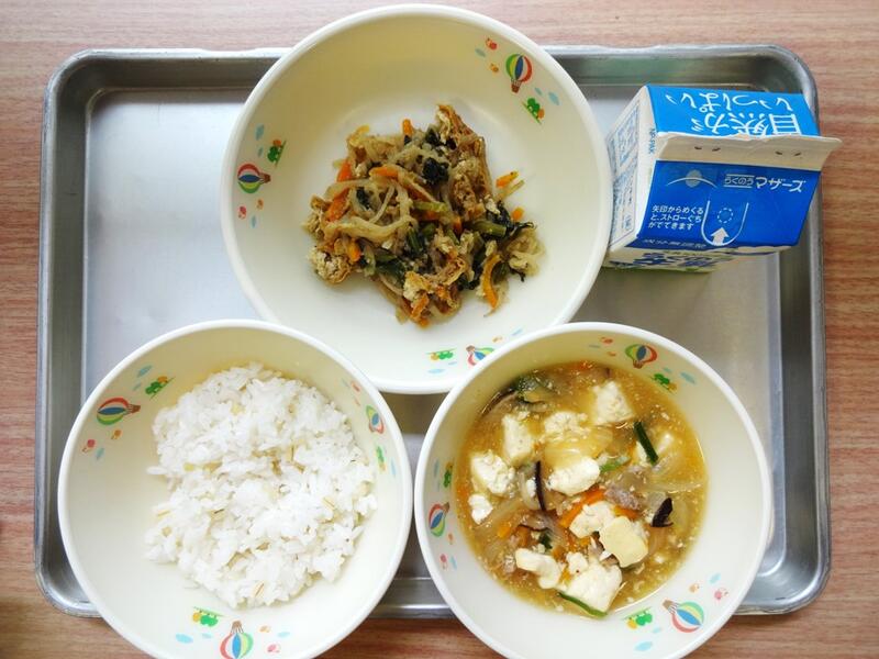子どもたちに人気の『マーボーどうふ』です。豆伸さんの木綿豆腐を使用しています。トウバンジャンとテンメンジャンを使って、ピリ辛味にしています。ごはんとの相性が良いおかずです。寒くなり、温かい食べ物が恋しい季節となりました。心温まる給食づくりを目指していきたいです★