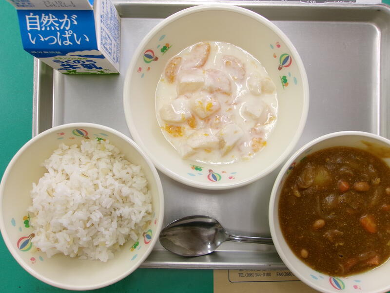 今日は、子どもたちが大好きなカレーとフルーツたっぷりの