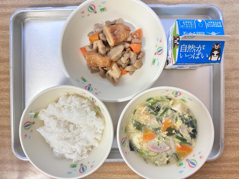 熊本県の郷土料理である「ふわふわだご汁」を給食に取り入れました。小麦粉と澱粉を使って、だごを作りました。手作りだごです。愛情を込めて作りました。