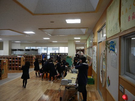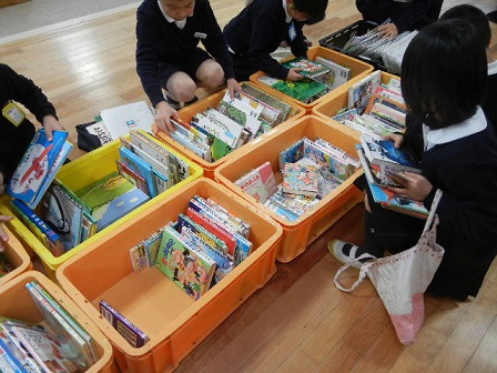 学校の玄関内には、ドンちゃん号用の返却ボックスも設定されており、至れり尽くせりの市立図書館サービスです。もちろん、入学と同時に個人カードが発行されるシステムになっています。読書に親しむ環境が整っています。