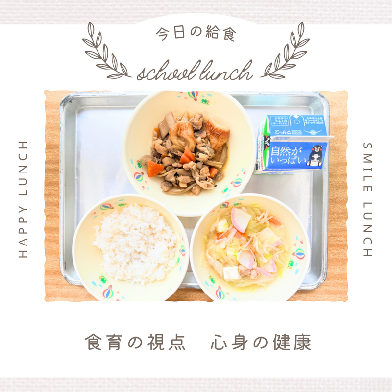 今日の給食では、今が旬のみずみずしい「たけのこ」をたっぷりと筑前煮に取り入れました。たけのこ特有のシャキシャキとした心地よい歯ごたえがアクセントになっています。じっくりと時間をかけて炊き上げることで、野菜のうま味が芯までしっかりと染み込みました。