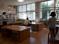 市の防災放送と校内放送等を活用して実施をしました。子どもたちは、自分の机等にもぐり、静かに自分の身を守る行動をとる防災訓練に真剣に取り組んでいました。