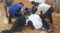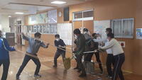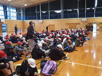 2時間目の授業中に、不審者役(警察官)の方が高学年昇降口から入ってくるという設定でした。不審者役の方をうまく誘導し、職員数名で取りおさえるという対応でした。児童は、教室で静かに待機をし、指示を待つという練習でしたでした。その後、熊本北合志警察署スクールサポーターの秋山様から、登下校時の不審者への対応の仕方や社会のルールを守ることの大切さ等を教えていただきました。
