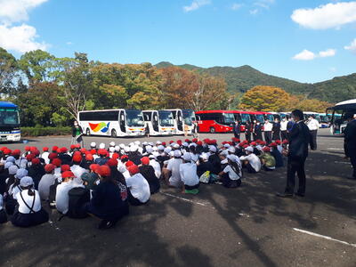 修学旅行2日目(10月19日(水))は、6時起床で朝食をとり、8時に弓張の丘ホテルを出発しました。