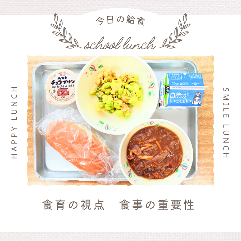 12月生まれさんをお祝いするバースデー給食です。素敵な1年になりますように。チョコプリンをデザートにつけています。