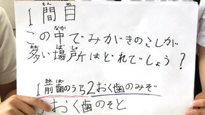 一部 歯に関するクイズ : 児童が家族でクイズを解くようになっています。