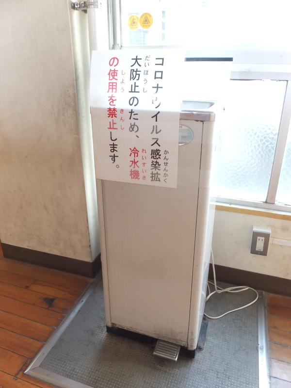 暑くなりますが、感染症予防の観点から今年は冷水機の使用は禁止します。