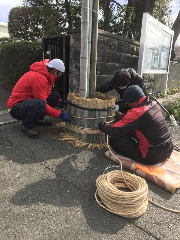 12月26日(日)、PTA役員・地域の方々・本校職員で門松づくりを行いました。
