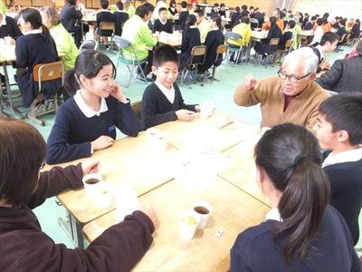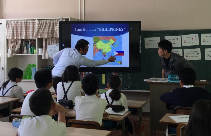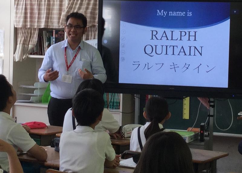 フィリピン出身というラルフ先生の話に6年生も興味津々でした。