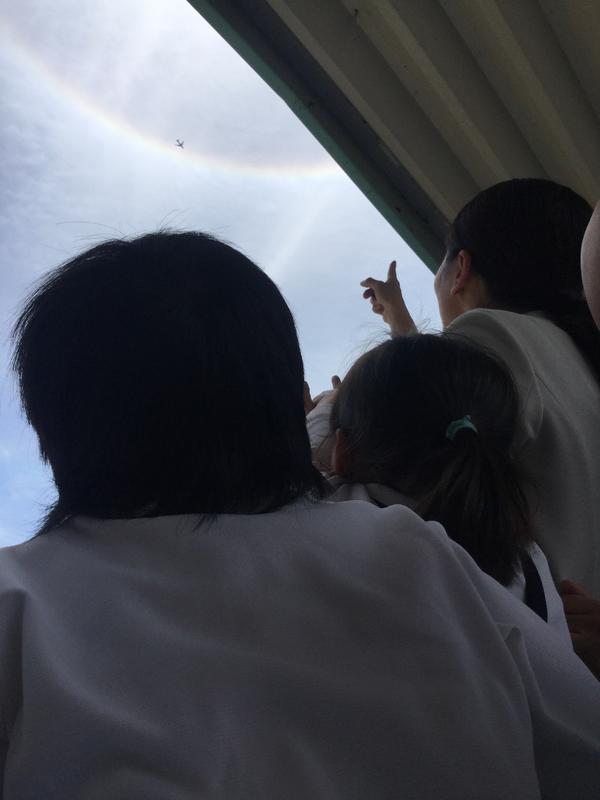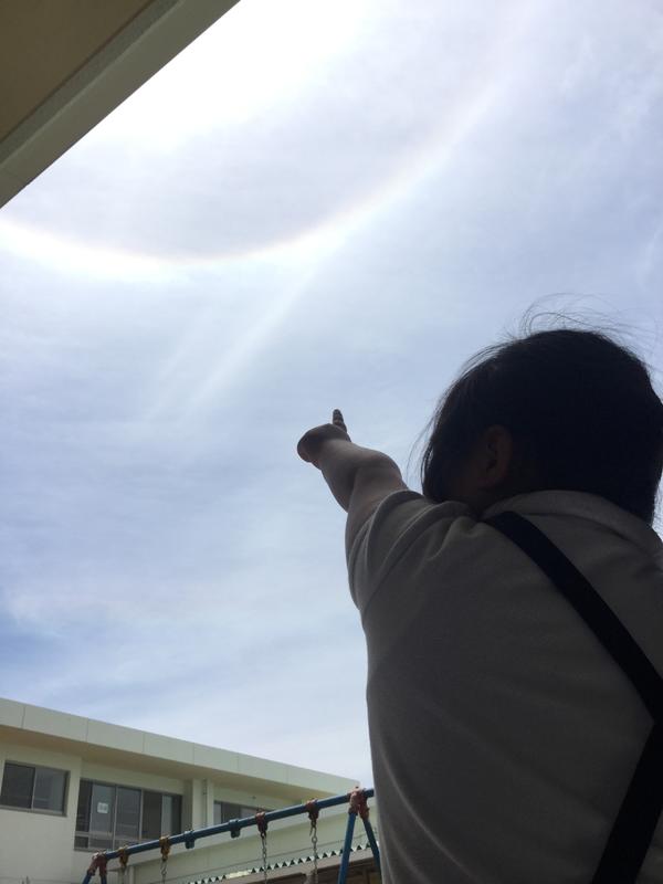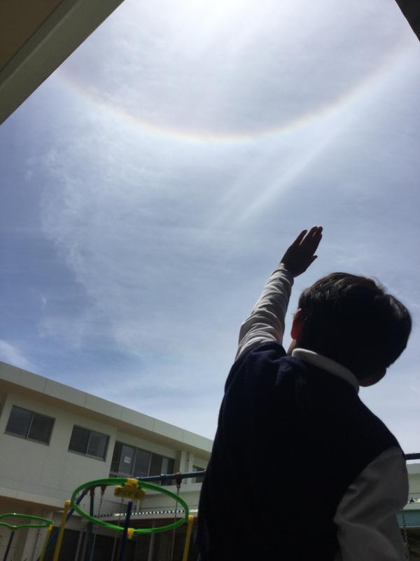 大陽の回りに虹が出ているのを子どもたちが見つけました。