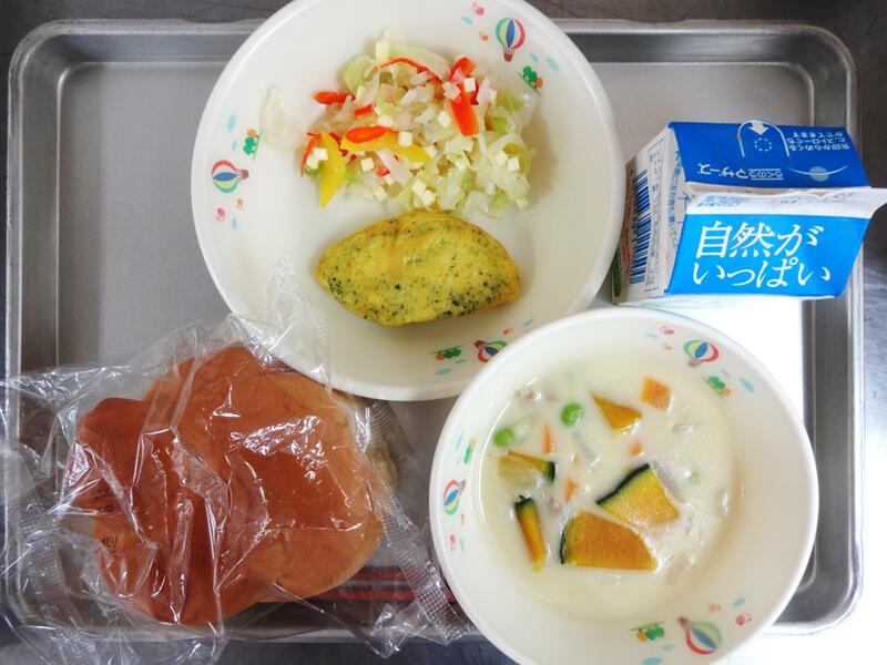 夏が旬のかぼちゃを使用しました。とっても大きな西洋かぼちゃが届きました。ほくほくして、甘みがあり、美味しかったです。かぼちゃは子どもたちにも人気の野菜です。毎日美味しい夏野菜が学校に届きます☆