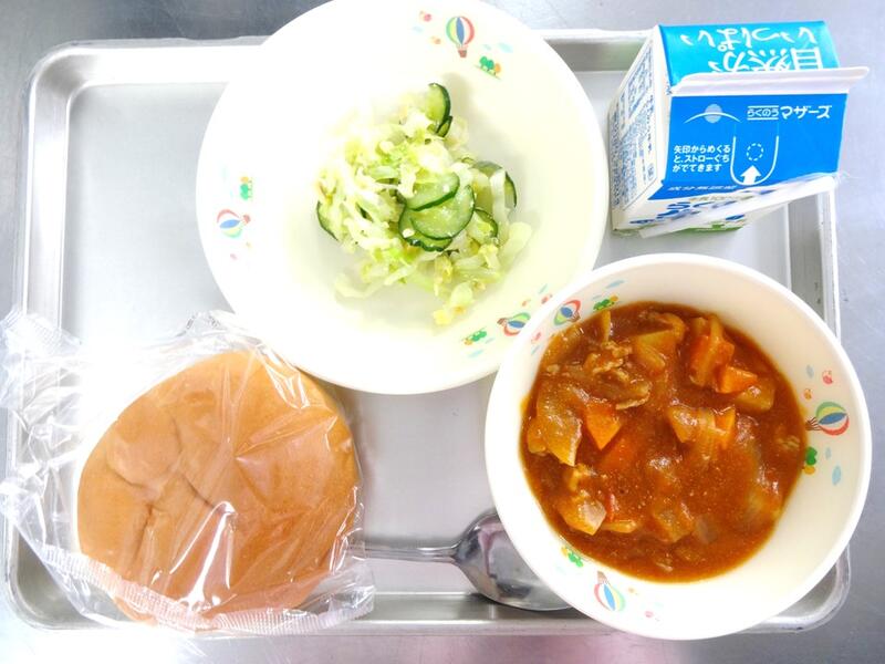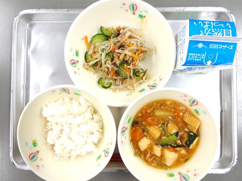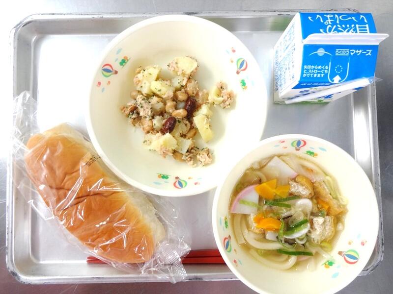 たぬき汁は、煮干しだしを活かして作りました。さつま揚げのうま味もでました。キャベツのひじき和えには、ひじきの佃煮を入れています。ひじきが苦手な子でも、ひじきの佃煮にすることで食べやすくなります。海藻にはミネラルが豊富に含まれています。普段、好んで食べる食材ではないので、給食では意識的に取り入れたいと思っています。