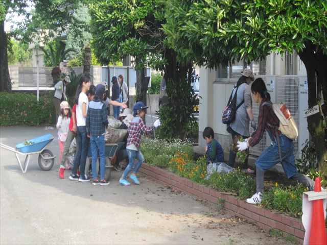 忘れ物として、草取り鎌1つ、子ども用軍手1つ、おもちゃのスコップ1つ、柄がピンクの移植ごて1つが届けられております。心当たりがある方は、職員室までお越しください。