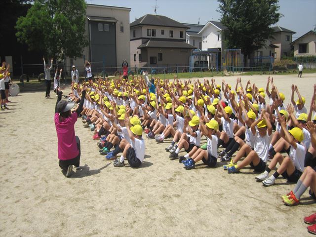 きをつけの仕方、休めの仕方、ラジオ体操、話の聴き方、体育座りの姿勢、返事の仕方…・などなど、集団だからこそ学べる大切なことの学習をしました。