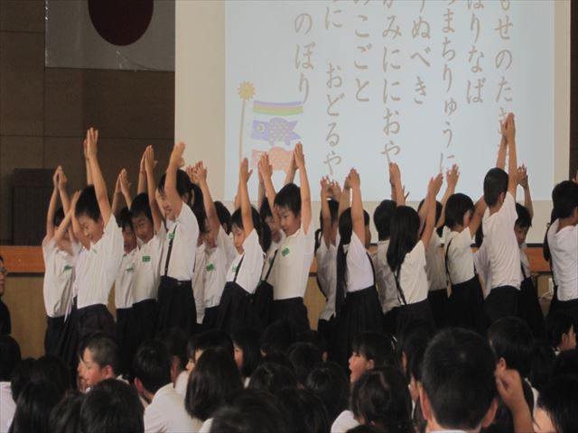今回の発表は、2年生と5年生。元気な「たけのこ ぐん!」の詩の暗唱としっとりとした「ぼくらのもの」の詩の暗唱でした。