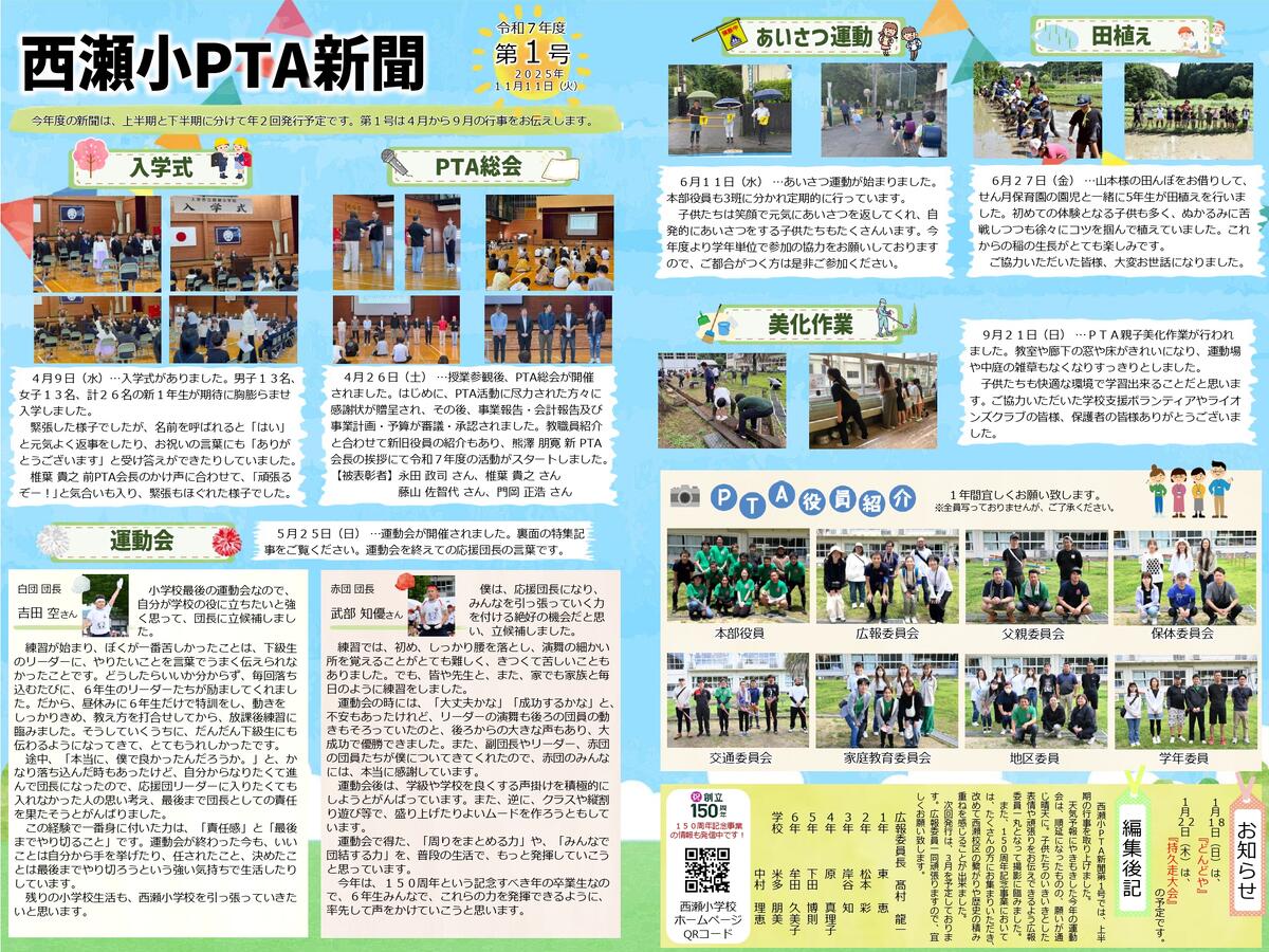 どうぞ!!ご熟読ください♪「西瀬小PTA新聞~令和7年度 第1号~」