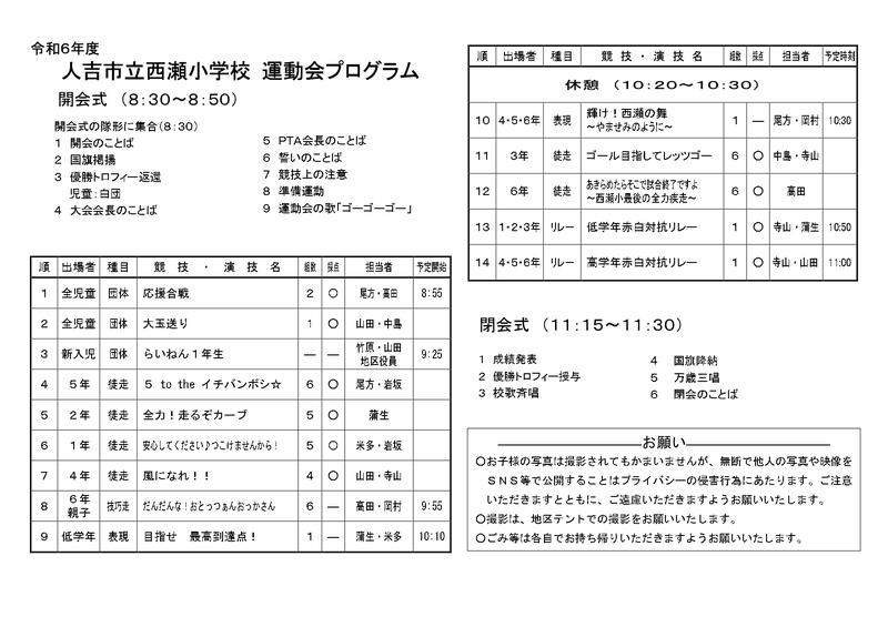 ・ 近隣の方は、できるだけ徒歩または自転車での来校をお願いします。自動車でおいでになる場合は、河川敷広場を御利用ください。