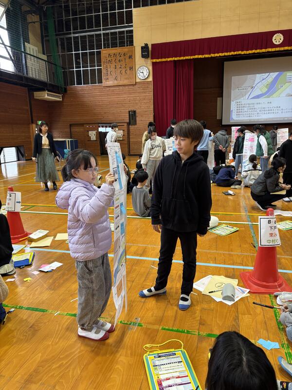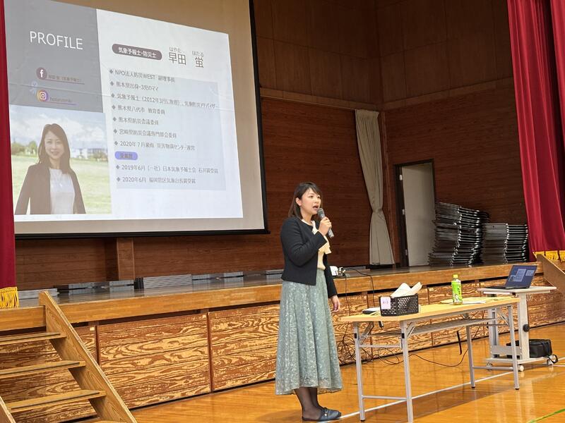 昨日、気象予報士の早田さん、八代河川事務所の方々にお越しいただき、防災教室を行いました。