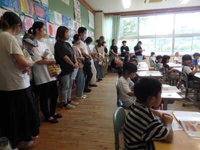 西瀬小学校でも人吉市の黙とうのサイレンに合わせて手を合わせました。